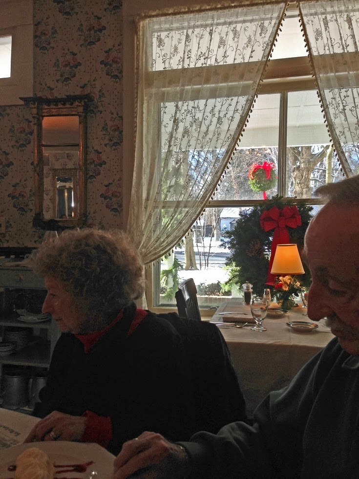 Today, we went to Stockbridge, Massachusetts where we met Vick’s Aunt Sheila and Uncle Charlie, and his daughter, Tina, her husband Charlie and one son Tate for lunch at the Red Lion Inn. When we arrived, there was a harpist playing in the lobby by a burning fireplace and beautiful ten foot Christmas tree.